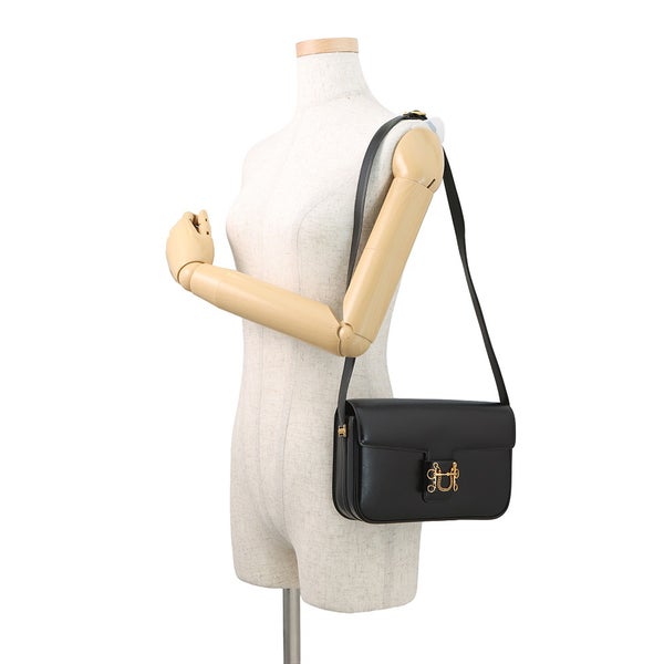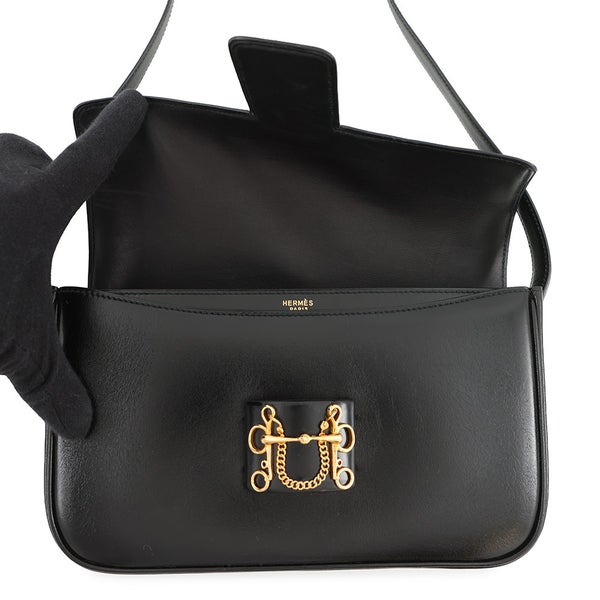 エルメス ショルダーバッグ ソローニュ ブラック/ゴールド金具 ボックスカーフ 〇R刻印 黒 安心保証