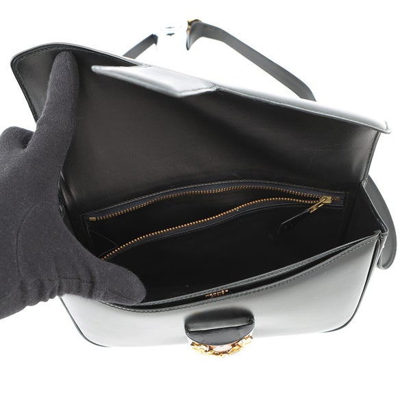 3. エルメス ショルダーバッグ ソローニュ ブラック/ゴールド金具 ボックスカーフ 〇R刻印 黒 安心保証