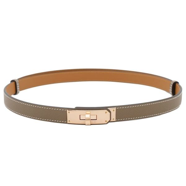 6. エルメス ケリーベルト 18 エトゥープ/ピンクゴールド金具 エプソン K刻印 HERMES べルト