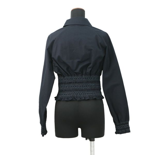 6. エルメス ジャケット Veste taille brodee a smocks シャツ ジャケット コットン レディースサイズ34 HERMES