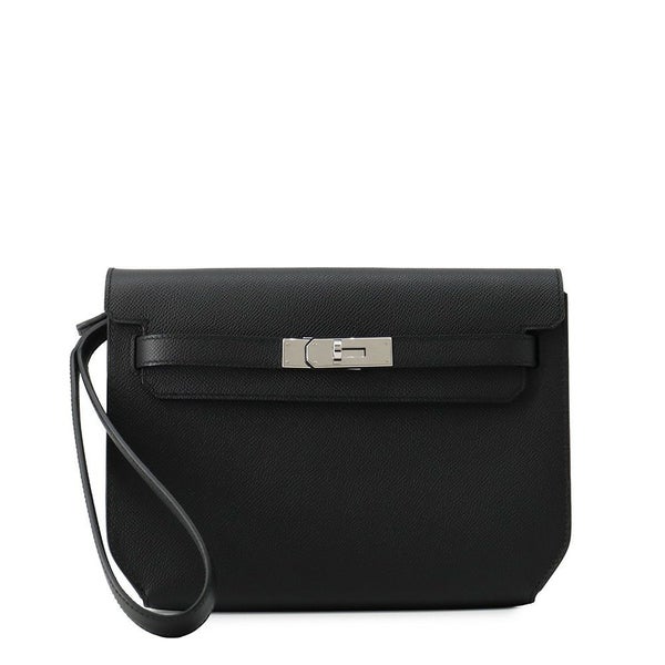 エルメス クラッチバッグ ケリーデペッシュ25 ブラック/シルバー金具 エプソン K刻印 メンズ 黒 安心保証