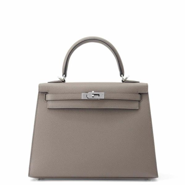 5. エルメス ハンドバッグ ケリー25 外縫い エタン/シルバー金具 エプソン W刻印 2wayショルダー
