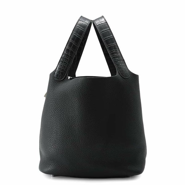 5. エルメス ハンドバッグ ピコタンロックMM タッチ ブラック/シルバー金具 トリヨンクレマンス/アリゲーターマット D刻印 黒 安心保証
