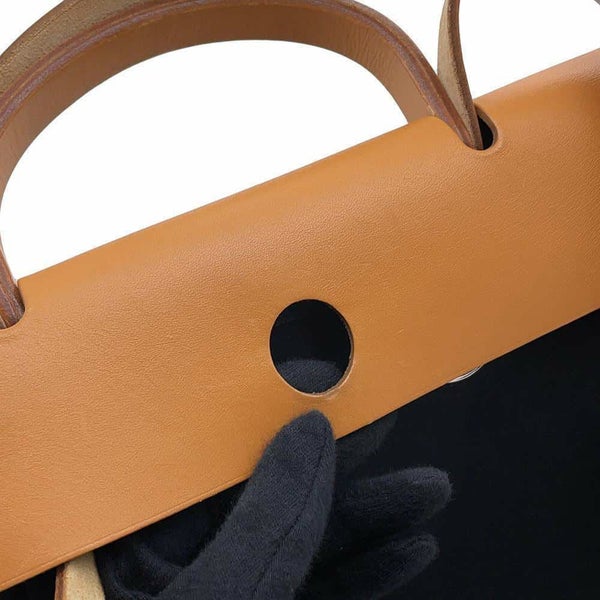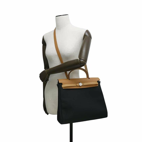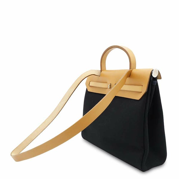 5. エルメス エールバッグジップPM ブラック/ナチュラル/シルバー金具 トワルオフィシェ/ヴァッシュハンター □G刻印 2way 黒 安心保証