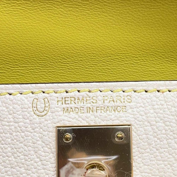 5. エルメス ハンドバッグ ミニケリー2 外縫い ナタ/ライム/シャンパンゴールド金具 シェブルミゾル B刻印 2wayショルダー SPO
