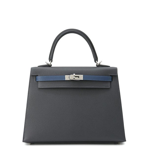 5. エルメス ケリー25 外縫い トリコロール アルドワーズ/ブラック/ブルータイ/シルバー金具 エプソン K刻印 2wayショルダー