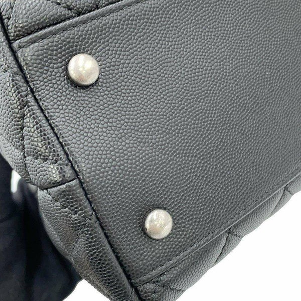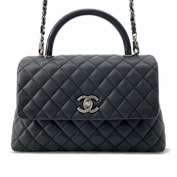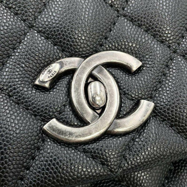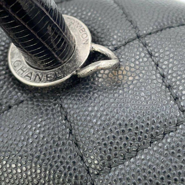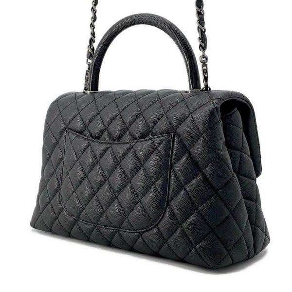 5. シャネル ハンドバッグ マトラッセ ココマーク ハンドル フラップ キャビアスキン リザード A92991 2way 黒 安心保証