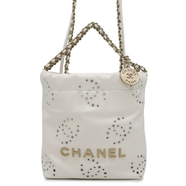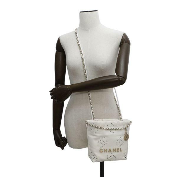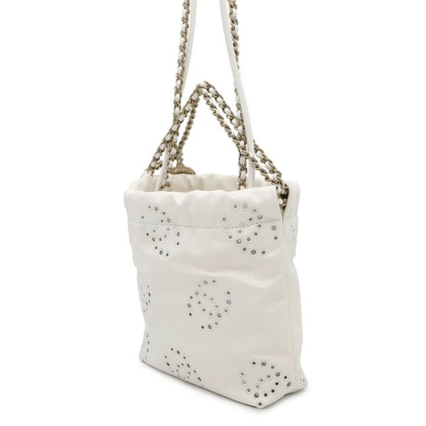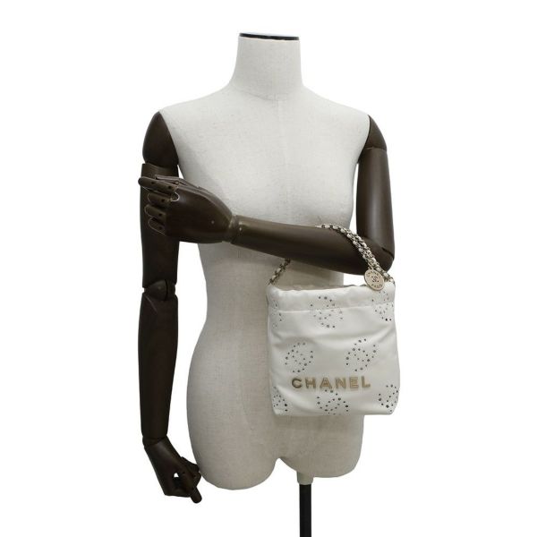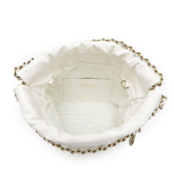 5. シャネル チェーンショルダーバッグ CHANEL 22 ミニ ココマーク シャイニーカーフレザー AS3980 2way 白