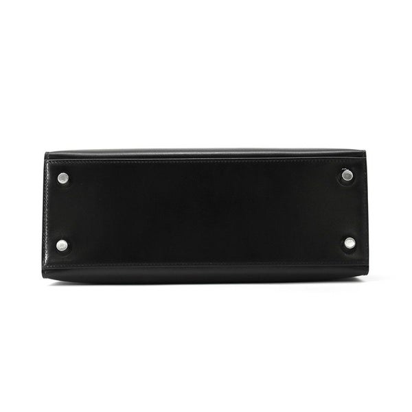 5. エルメス ハンドバッグ ケリー25 外縫い ブラック/シルバー金具 ボックスカーフ K刻印 HERMES Kelly 2wayバッグ 黒