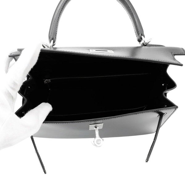 7. エルメス ハンドバッグ ケリー25 外縫い ブラック/シルバー金具 ボックスカーフ K刻印 HERMES Kelly 2wayバッグ 黒