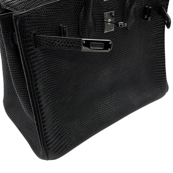 7. エルメス バーキン25 ブラック/ルテニウム金具 リザード J刻印 HERMES Birkin ハンドバッグ 黒 安心保証