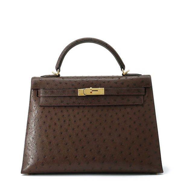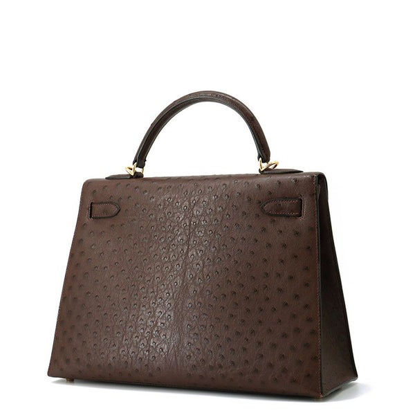 エルメス ハンドバッグ ケリー32 外縫い ブラウン/ゴールド金具 オーストリッチ □F刻印 2wayショルダー 安心保証