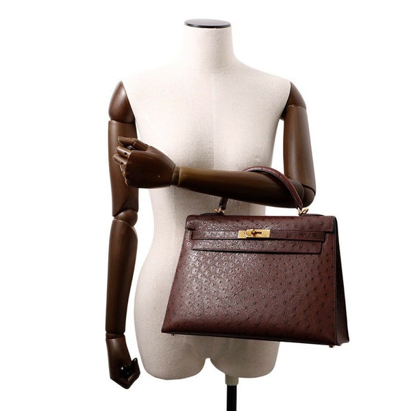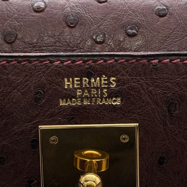5. エルメス ハンドバッグ ケリー32 外縫い ブラウン/ゴールド金具 オーストリッチ □F刻印 2wayショルダー 安心保証