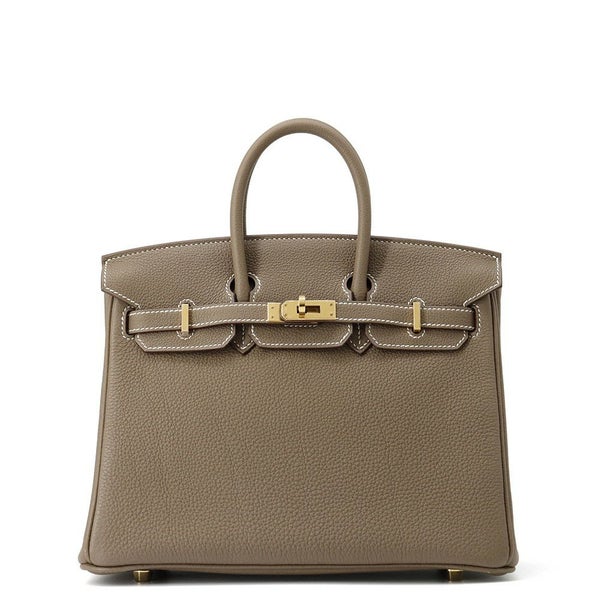 5. エルメス バーキン25 エトゥープ/ゴールド金具 トゴ W刻印 HERMES Birkin ハンドバッグ 安心保証