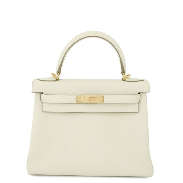 5. エルメス ハンドバッグ ケリー28 内縫い クレ/ゴールド金具 トゴ B刻印 2wayショルダー 安心保証