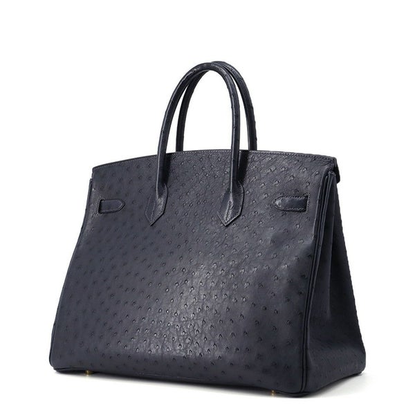 エルメス バーキン35 ブルーインディゴ/ゴールド金具 オーストリッチ □I刻印 HERMES Birkin ハンドバッグ 安心保証