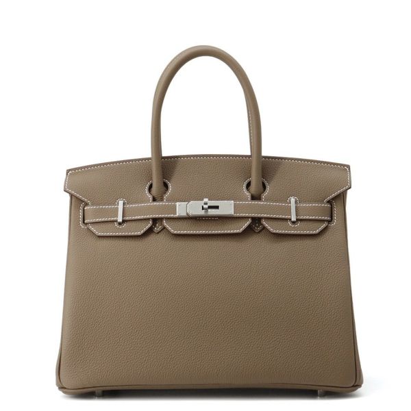 7. エルメス バーキン30 エトゥープ/シルバー金具 トゴ K刻印 HERMES Birkin ハンドバッグ