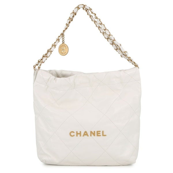 5. シャネル ハンドバッグ CHANEL 22 マトラッセ スモール シャイニーカーフスキン AS3260 CHANEL ポーチ付き 白 安心保証
