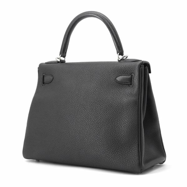 5. エルメス ハンドバッグ ケリー28 内縫い プロン/シルバー金具 トゴ X刻印 2wayショルダー 黒 安心保証
