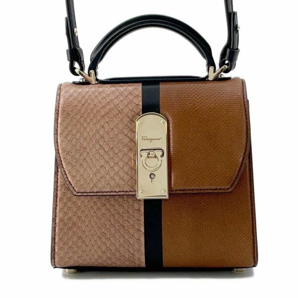 5. サルヴァトーレ・フェラガモ ハンドバッグ ガンチーニ ミニ ボクシーズ 型押しレザー 2wayショルダー 安心保証