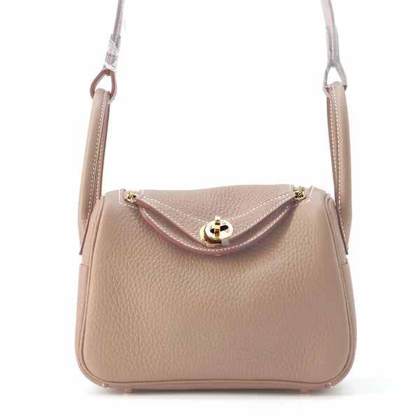 5. エルメス リンディ ミニ エトゥープ/ゴールド金具 トリヨンクレマンス W刻印 2wayショルダー