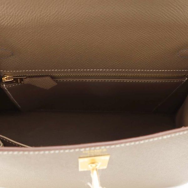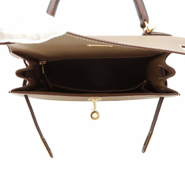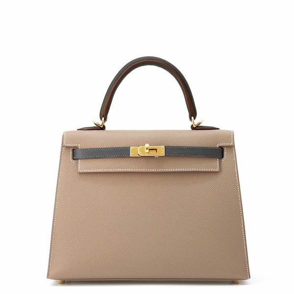 5. エルメス ケリー25 外縫い トリコロール エトゥープ/ブラック/グリミスティ/ゴールド金具 エプソン W刻印 2way 黒