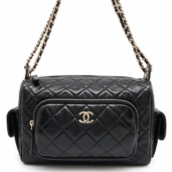 5. シャネル チェーンショルダーバッグ カメラケース マトラッセ ココマーク シャイニークランプルラムスキン AS5156 黒