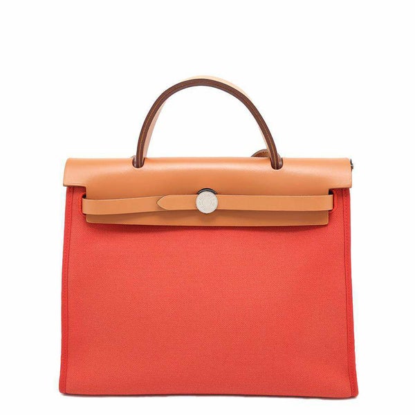5. エルメス エールバッグジップPM オレンジ/ブラウン/シルバー金具 トワルミリタリー/ヴァッシュハンター A刻印 2way 安心保証