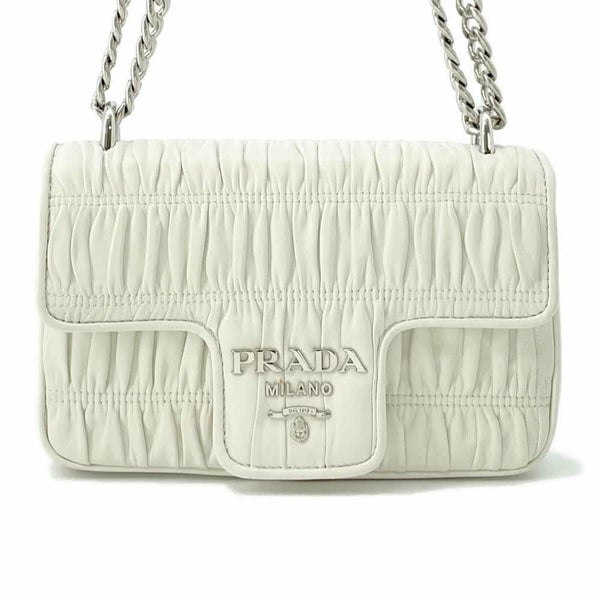 プラダ バッグ ◆美品◆ プラダ バッグ レディース PRADA BAG プラダ チェーンショルダーバッグ ギャザー レザー 1BD140 PRADA バッグ 白 安心保証