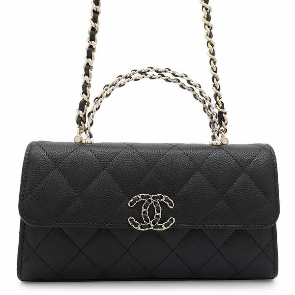 5. シャネル チェーンショルダーバッグ トップハンドル フォンケース マトラッセ ココマーク キャビアスキン AP3238 CHANEL 黒