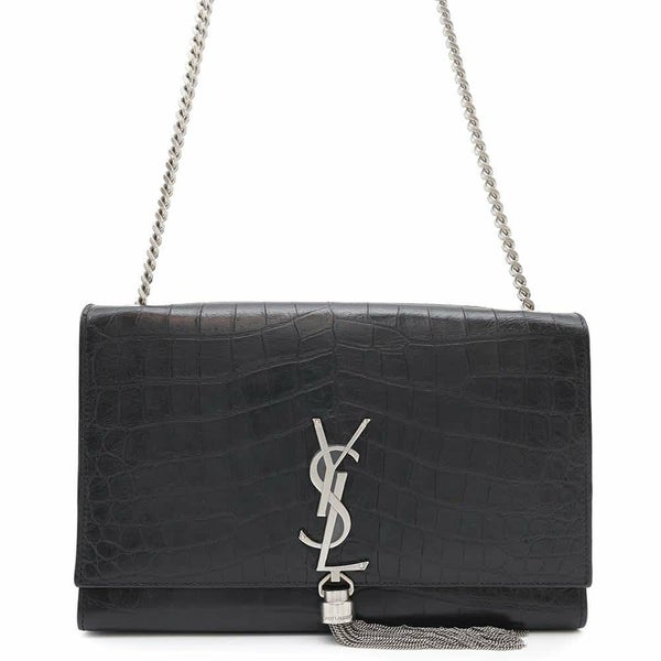 5. サンローランパリ チェーンショルダーバッグ クラシック ミディアム 型押しレザー 354119 SAINT LAURENT PARIS タッセル 黒 安心保証