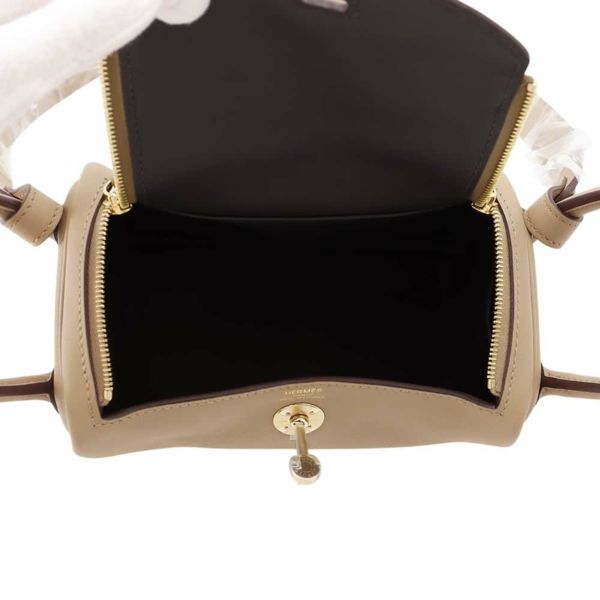 5. エルメス リンディ ミニ ヴェルソ ベージュマルファ/グリミスティ/シャンパンゴールド金具 スイフト W刻印 2wayショルダー