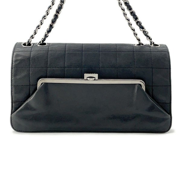 5. シャネル チェーンショルダーバッグ チョコバー ラムスキン CHANEL バッグ Wチェーン 黒 安心保証