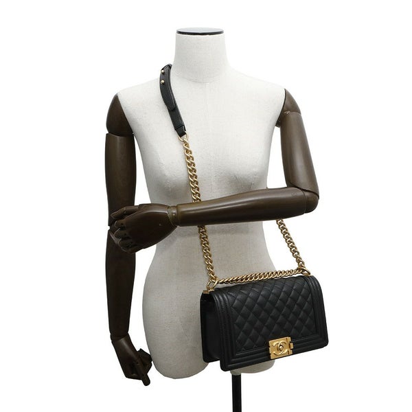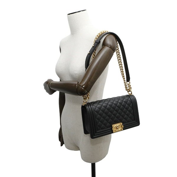 5. シャネル チェーンショルダーバッグ ココマーク ボーイシャネル キャビアスキン A67086 CHANEL BOY CHANEL 黒 安心保証