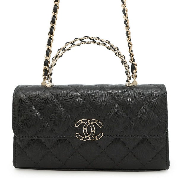 シャネル チェーンショルダーバッグ トップハンドル フォンケース マトラッセ ココマーク キャビアスキン AP3238 CHANEL 黒 安心保証
