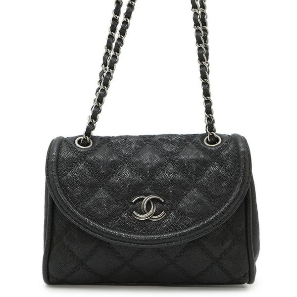 シャネル チェーンショルダーバッグ ココマーク キャビアスキン CHANEL 黒 安心保証