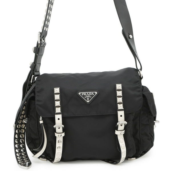 プラダ ショルダーバッグ スタッズ ナイロン レザー 1BD118 PRADA 斜め掛け 黒 安心保証