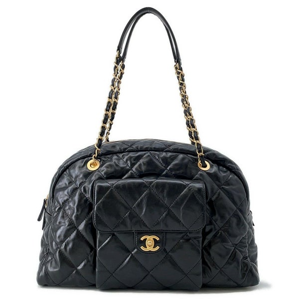 シャネル ショルダーバッグ ココマーク マトラッセ マキシボーリングバッグ カーフレザー AS4812 CHANEL 黒 安心保証
