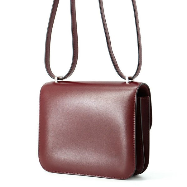 エルメス ミニ コンスタンス3 ルージュアッシュ/シルバー金具 ボックスカーフ D刻印 安心保証