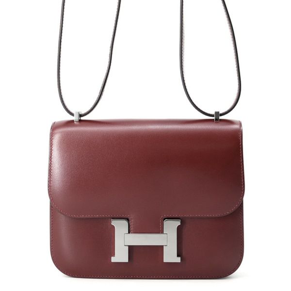 5. エルメス ミニ コンスタンス3 ルージュアッシュ/シルバー金具 ボックスカーフ D刻印 安心保証