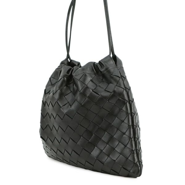 5. ボッテガヴェネタ ショルダーバッグ イントレチャート ダストバッグ ミディアム カーフレザー 796728 BOTTEGA VENETA 巾着 黒 安心保証