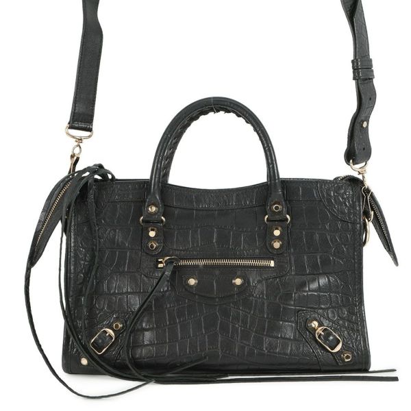 5. バレンシアガ ショルダーバッグ クラシックシティ レザークロコ型押し 431621 BALENCIAGA 2way 黒 安心保証
