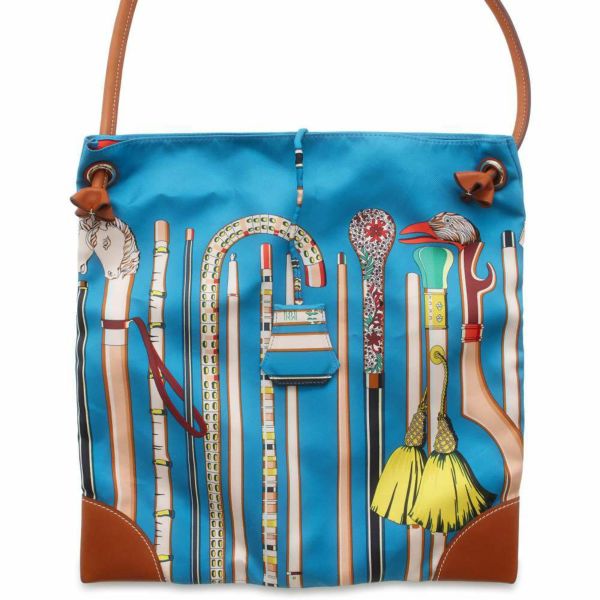 5. エルメス ショルダーバッグ シルキーシティPM ブルー/マルチカラー/シルバー金具 シルク/バレニア A刻印 安心保証