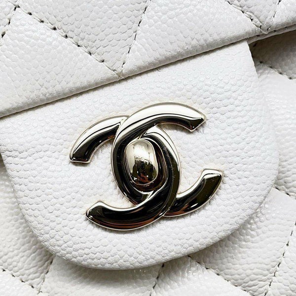 5. シャネル チェーンショルダーバッグ マトラッセ25 ココマーク キャビアスキン ダブルチェーン A01112 CHANEL 白 安心保証