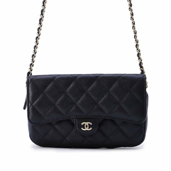 シャネル バッグ ◆新品同様◆ シャネル バッグ レディース CHANEL シャネル チェーンショルダーバッグ フラップ フォンケース マトラッセ ココマーク キャビアスキン AP2096 ポシェット 黒 安心保証