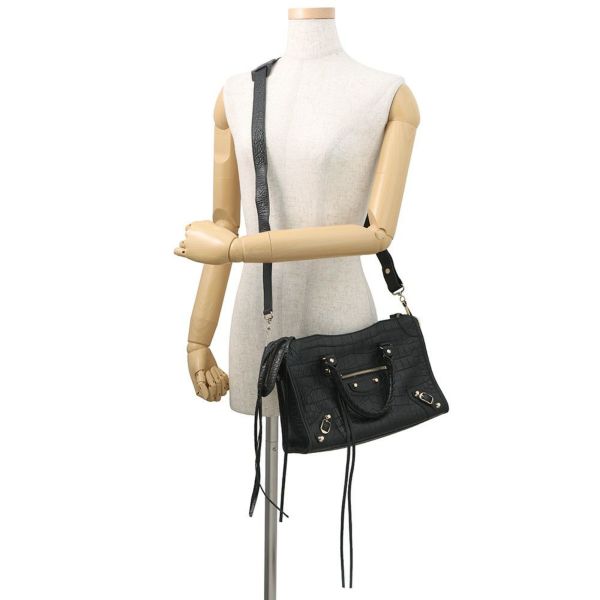 5. バレンシアガ ショルダーバッグ クラシックシティ レザークロコ型押し 431621 BALENCIAGA 2way 黒 安心保証