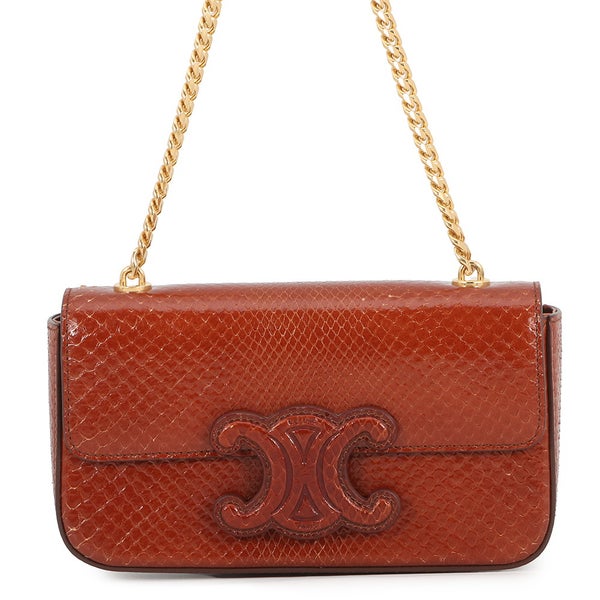 セリーヌ チェーンショルダーバッグ トリオンフ パイソン 199244 CELINE ブラウン 安心保証