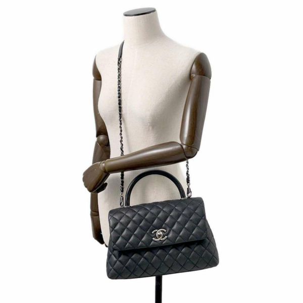 5. シャネル ハンドバッグ マトラッセ ココマーク ハンドル フラップ キャビアスキン リザード A92991 2way 黒 安心保証
