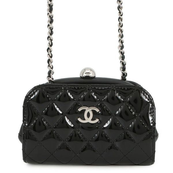 5. シャネル チェーンショルダーバッグ マトラッセ ココマーク パテント/レザー CHANEL チェーンポシェット 黒 安心保証