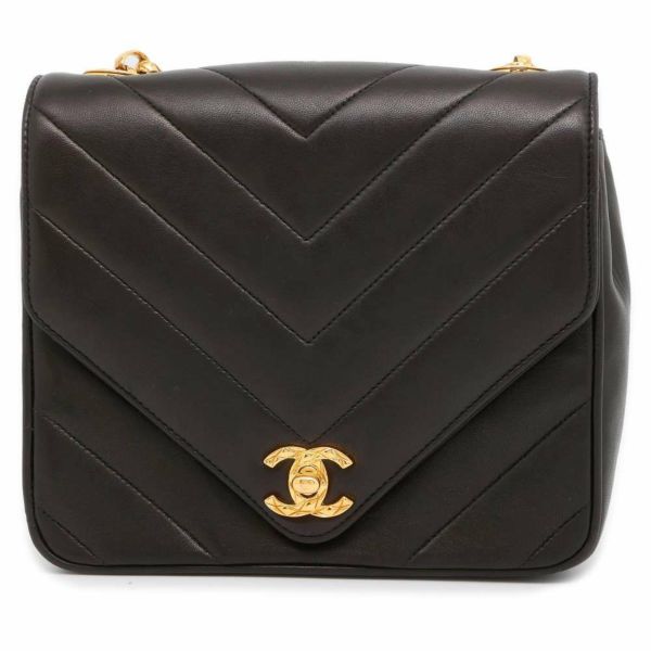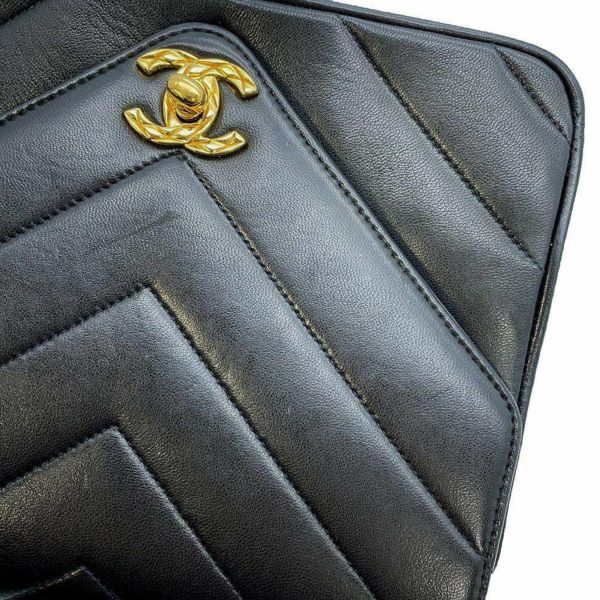 5. シャネル チェーンショルダーバッグ Vステッチ シェブロン ラムスキン CHANEL バッグ 黒 安心保証